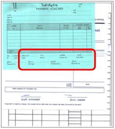 筆者の会社の支払伝票。赤い囲み部分がサインを必要とする箇所、ここには青色ボールペンでサインをするのが慣例になっている。
