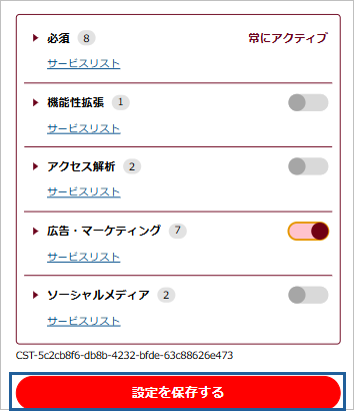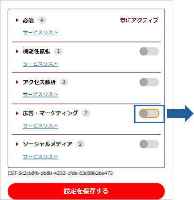 「広告・マーケティング」の「●」を右方向へスライドし、ON状態にします