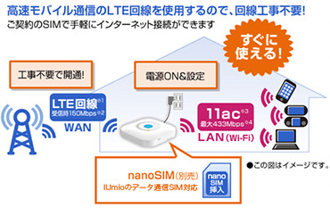 回線工事が不要でインターネット接続できる!