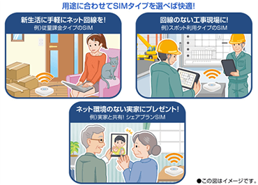 たとえば、一人暮らしをはじめるのに費用を抑えたい方、ADSLサービスの終了に伴い手軽にインターネット環境へ移行したい方も、回線工事不要ですぐにインターネット環境を構築できます。